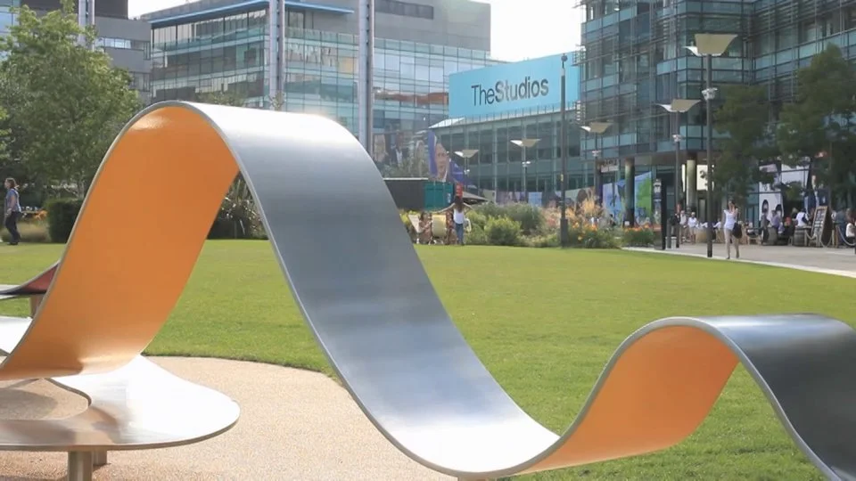 ITV wanted a range of branding and experiential installations for their new Coronation St studio and new offices at Media City in Manchester, to highlight and celebrate ITV’s presence at Media City and showcase the new ITV branding. I was the Senior Producer for the project and embarked on the initial concepting and scoping for the branding installations with the CD’s at ITV Creative. Once the concepts were scoped and selected we appointed and led specialist contractors to take on the physical design and manufacture and software development of the branding installations. I led the production from concept, through manufacture to installation at Media City that completed in July 2014. Along with the ITV stakeholders and appointed contractors I also worked with the architects, landlords, structural engineers and council planners at every stage to make sure we had the best creative and physical solutions for all parties that the installations would effect (aswell as ITV) and to obtain planning permission. Amongst the installations was a 16m long sculptural ribbon bench inspired by the new ITV logo made of stainless steel thats positioned in the piazza area of Media City, in front of the ITV offices. At the end of the sculpture, facing the building there is an interactive pod which houses a touch-screen. This pod allows visitors to customise the ITV logo with their choice of colours. Via this software visitors can send their colour design to the two 5m high LED ITV logo’s on the top of the building in front of them. The LED logos instantly change to the visitors colour choices. Visitors can also post their customised ITV logo to their Facebook page and tweet it, all directly from the touch screen of the pod. We also installed a range of large scale graphics, and other signage around the studio and offices as part of the wider branding programme.